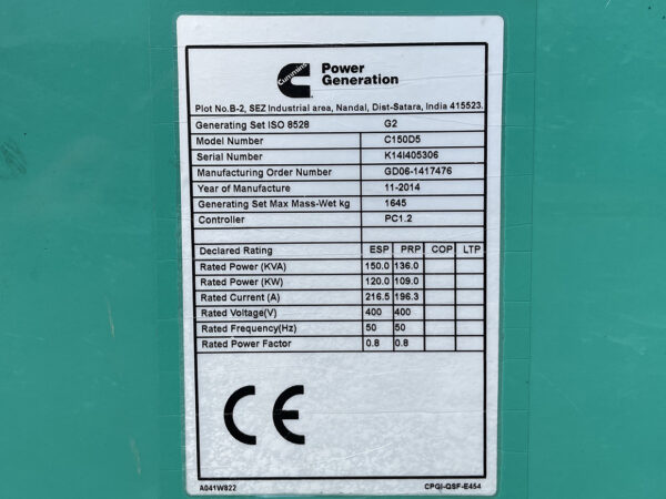 Cummins generatorius C150D5 parduodamas dalimis, dėl išsamesnės informacijos kreiptis telefonu